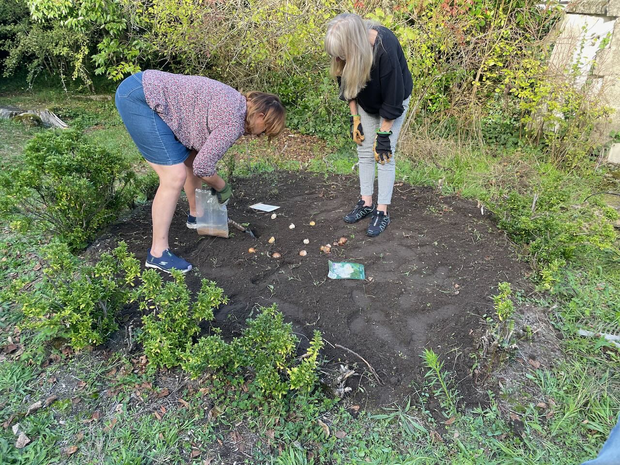 Åkte hem och där några fixade några lite i trädgården. Planterade lökar som jag fått som present.