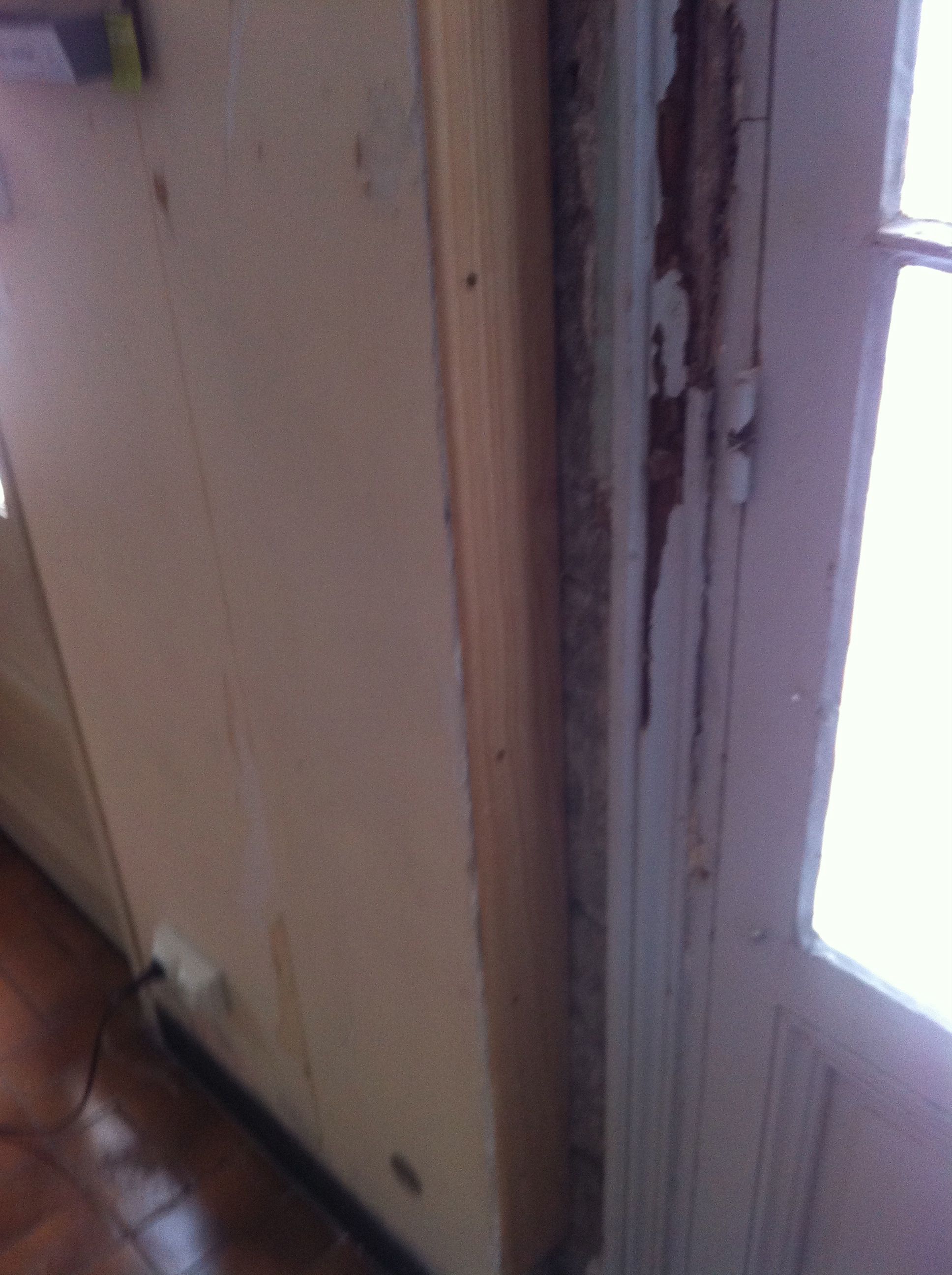 Idag har jag fixat med andra skarven (väggen ut mot trädgården). Före och efter: