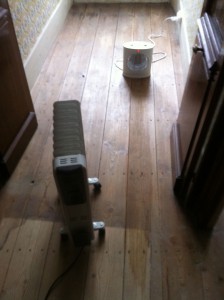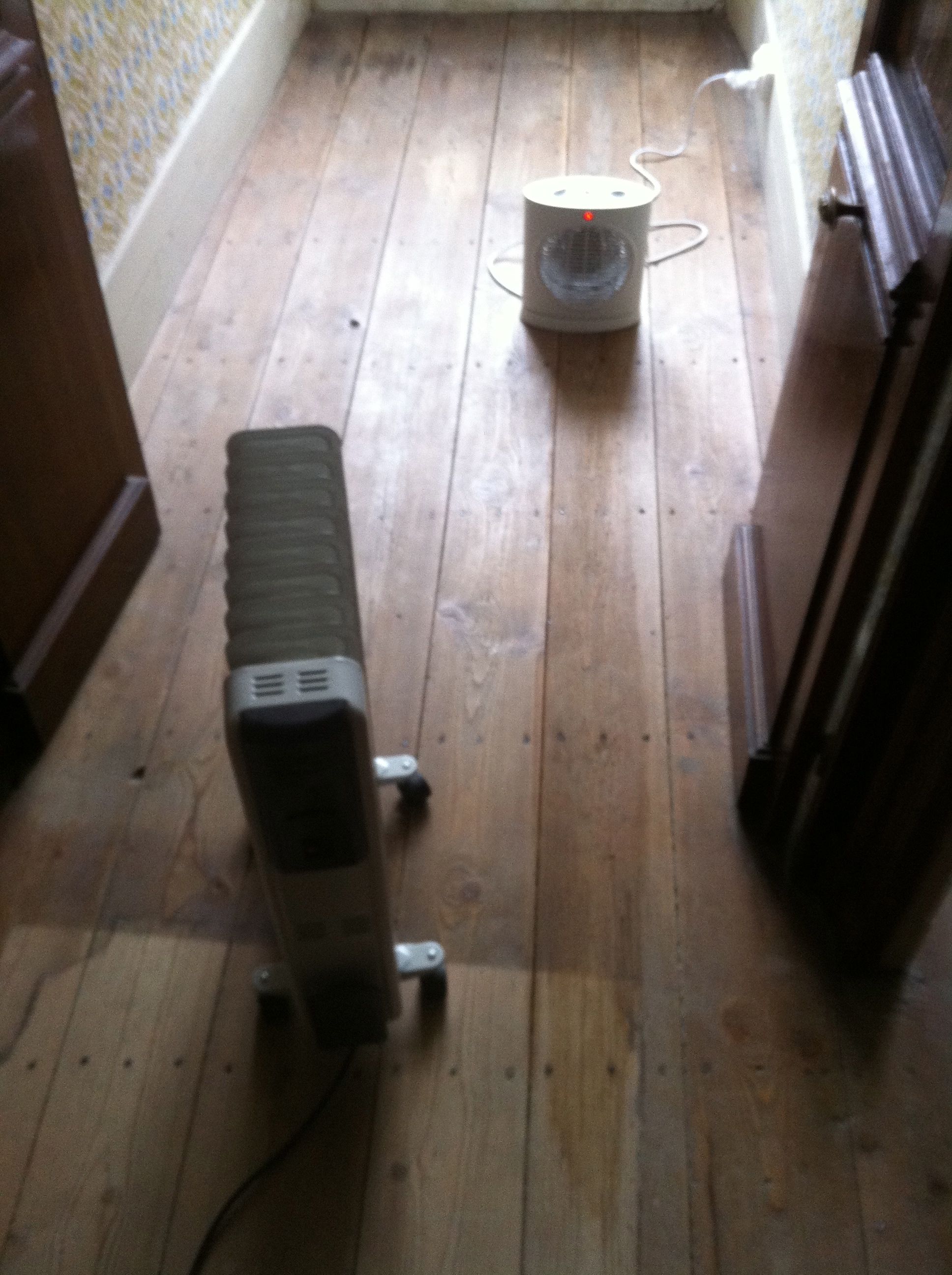 I fredags (eller torsdags) kväll var inte fönstrena ordentligt stängda i lilla minirummet på ovanvåningen. Och förmodligen hade det regnat väldigt kraftigt på kvällen för det hade läckt in en massa vatten som vi nu försöker torka upp.
