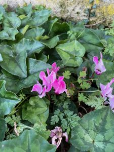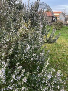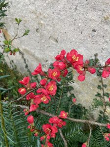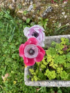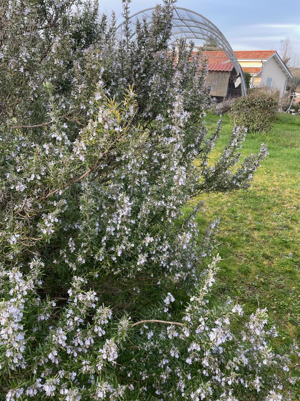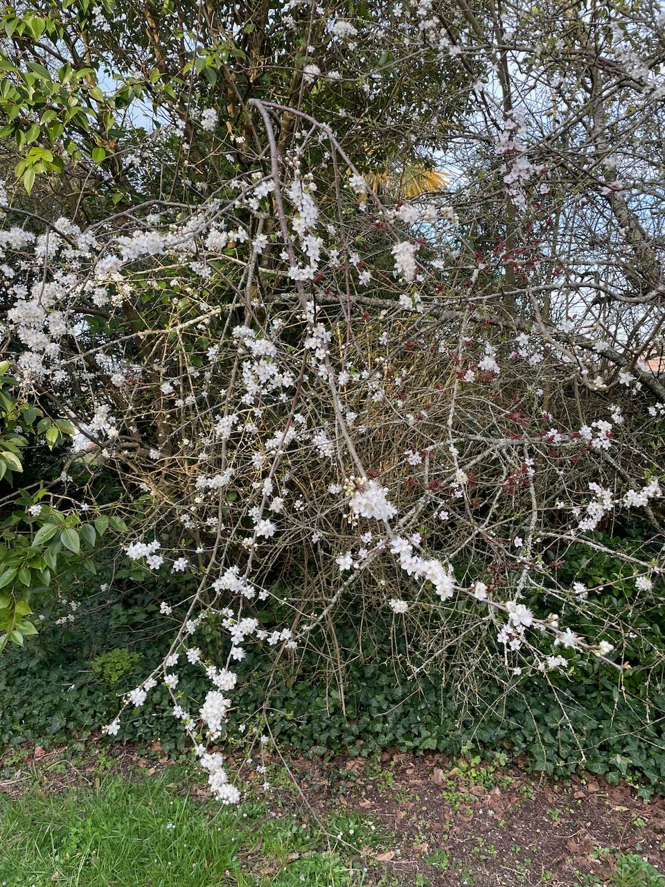 Hem och vila lite. Liten koll i trädgården. Många plommonträd som blommar. Och lite annat också, anemoner, primulor, rosmarin, cyklamen och kvitten.