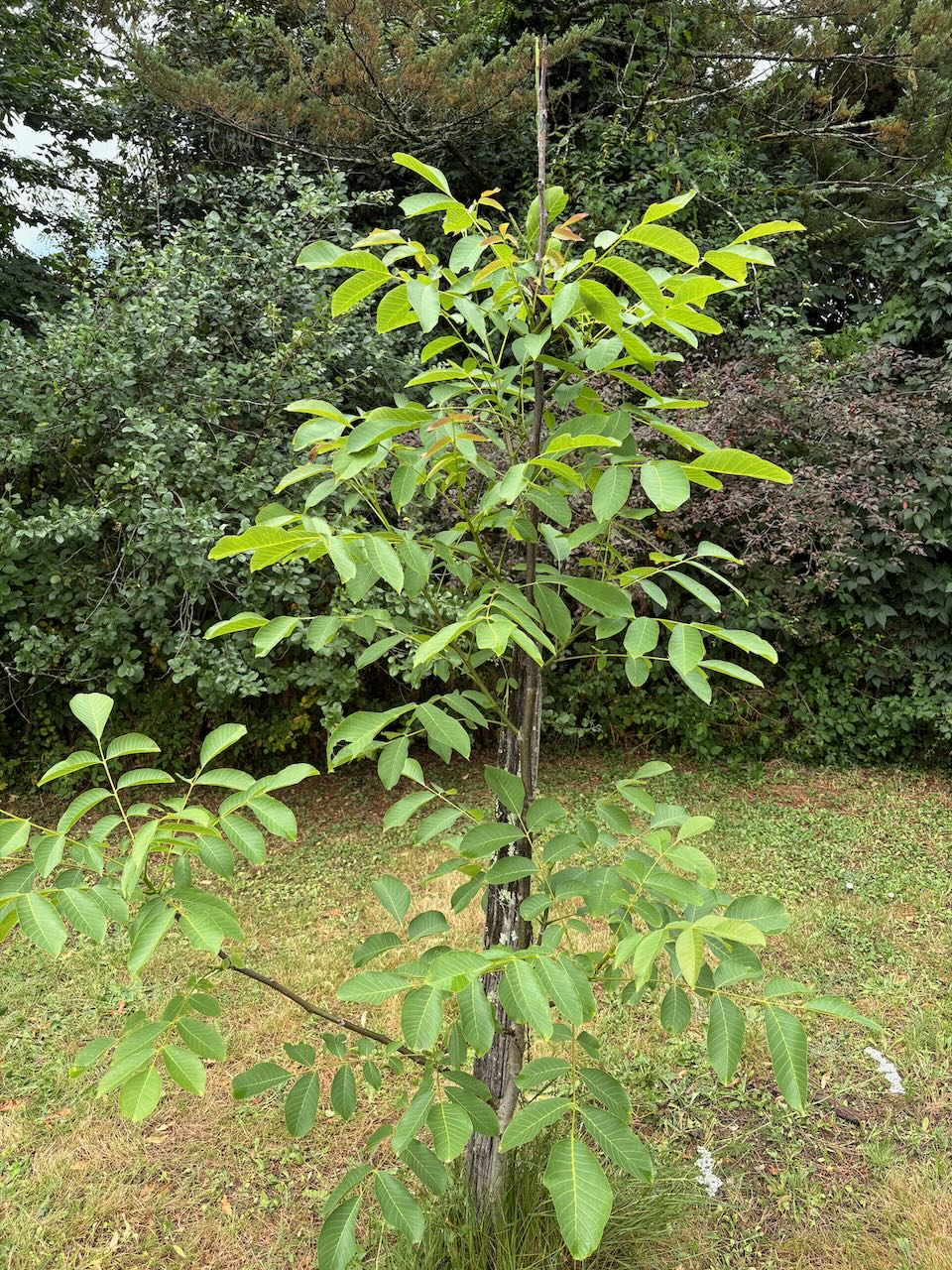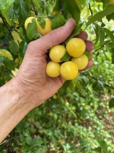 Några trädgårdsobservationer. Valnötsträdet lever trots allt. Såg ju heldött ut tyckte jag senaste resan. Mycket plommon på vissa träd, ”klasvis”. Och fackelliljan blommar lite sporadiskt.