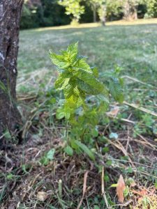 Kul med myntan i gräsmattan som man mer märkte förut när man klippte gräset för hand.
