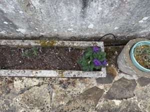 En blomma och en liten ej blommande kvar av alla heliotroper.