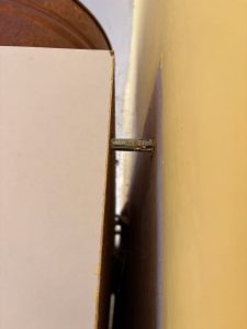 Jag vill inte vara här när det där skåpet ramlar ner… med allt porslin i. Kanske dags att tömma skåpen och köpa nya? Och skruva ner de(t) yttersta innan de(t) lossnar?