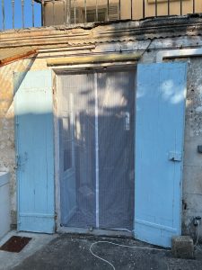 Satte upp nät i dubbeldörrarna till trädgården igår.