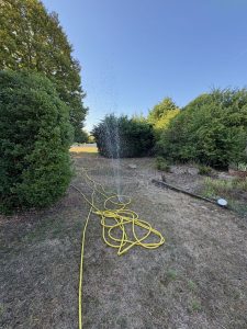 Klippo har råkat klippa sönder en del av vattenslangen.