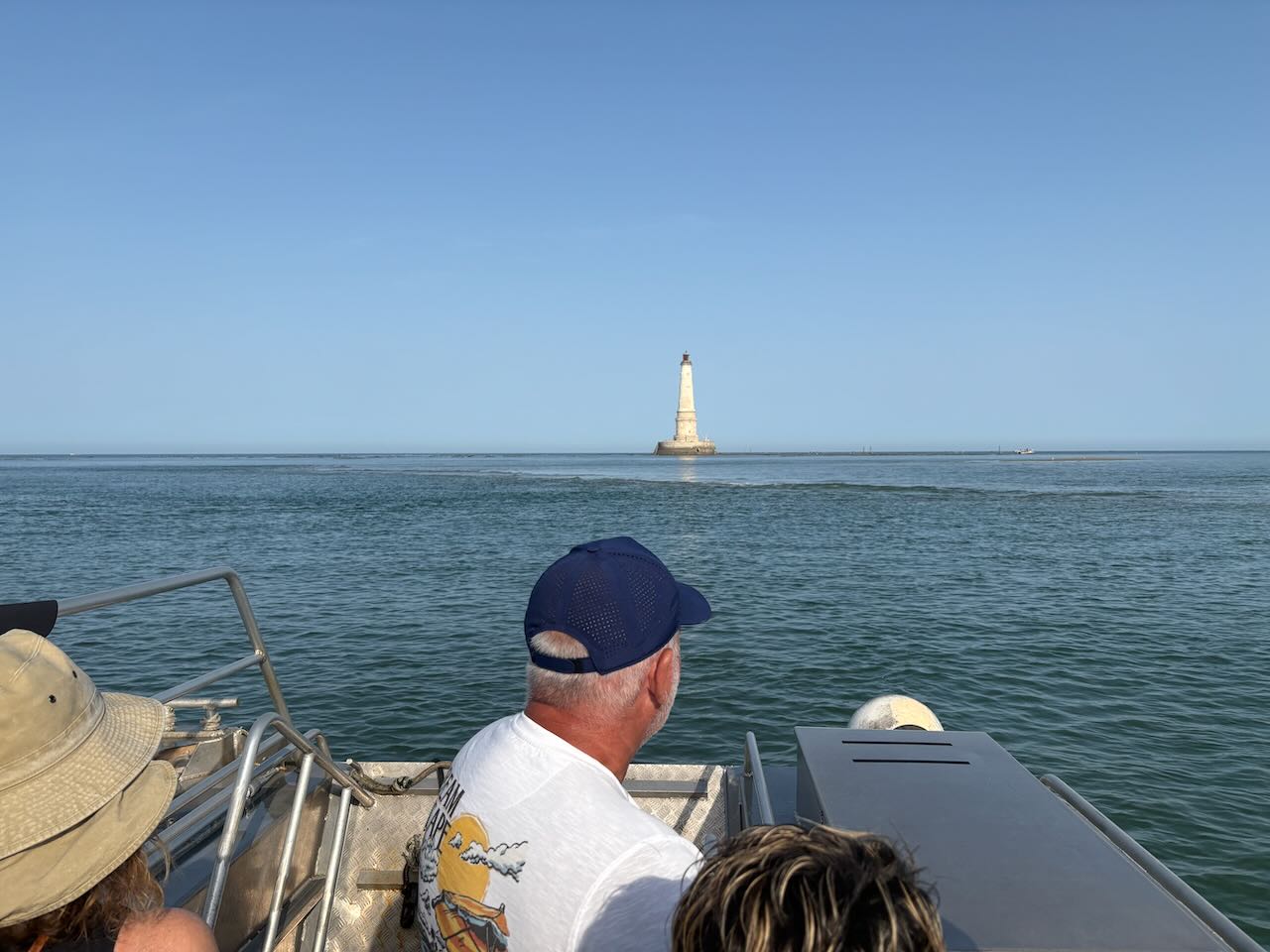 Upp tidigt och åkte till Royan där vi tog båten ut till fyren Cordouan. Tog 45 minuter med vanlig båt sedan en kvart med en slags ambifiebåt med hjul. Amfibiebåten drogs på släp.