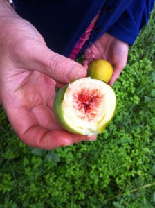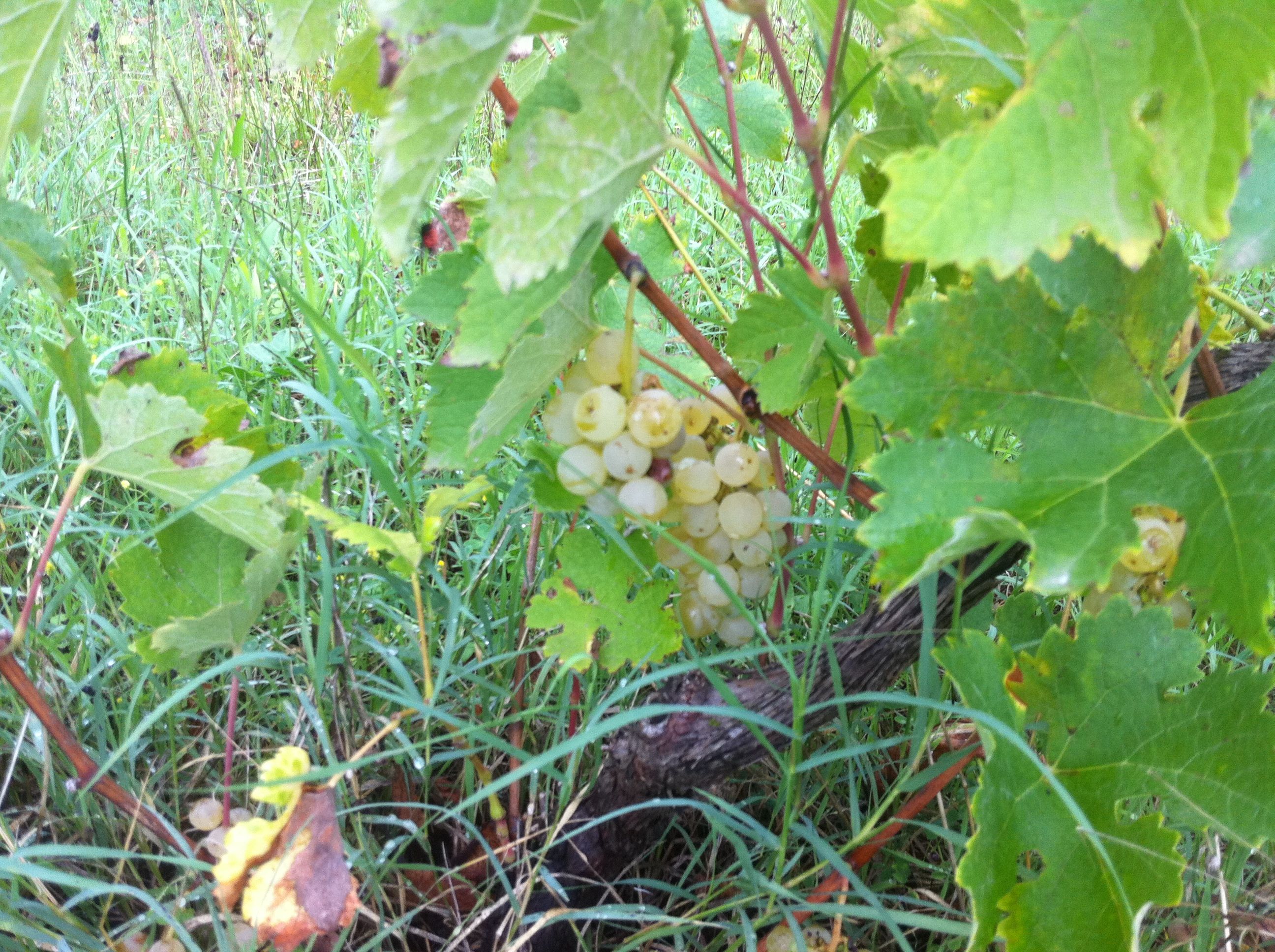 Alla blåa druvor verkar ha mognat och fallit ner på marken för ett tag sedan. Gröna druvor finns kvar.