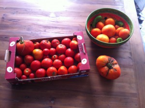 Grannen ringde ju tidigare i veckan och oroade sig för tomaterna. Vi förstod inte riktigt problemet tror jag. Det här hade han ställt in i kylen:
