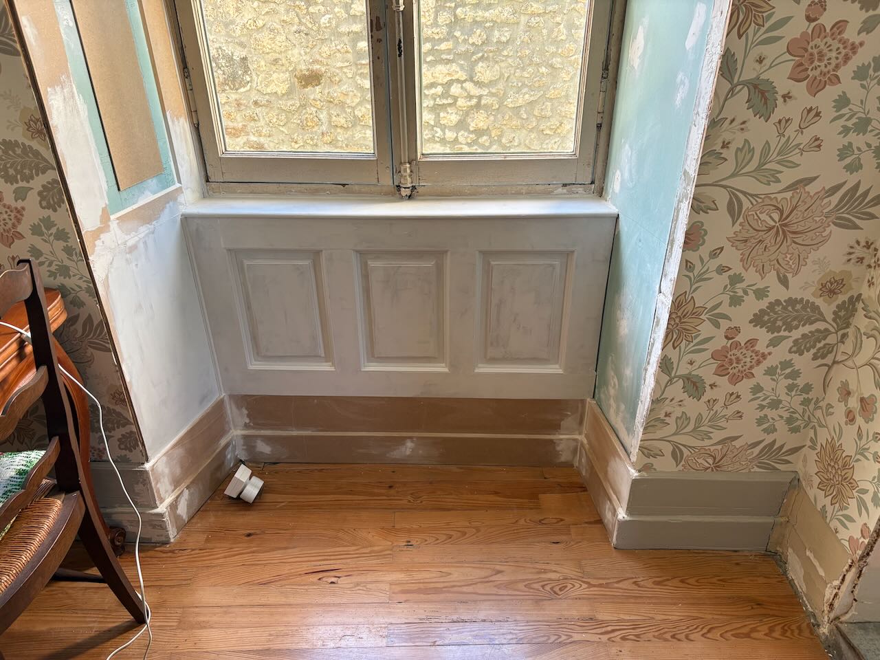 Städar lite till och kan inte hålla mig från att måla ett första lager på en del av fönsternischen.