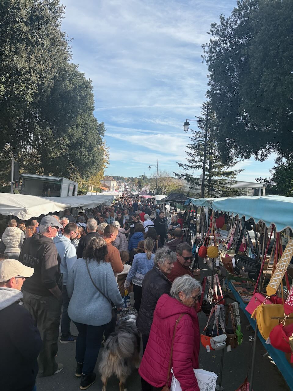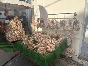Gick en sväng på dagens marknad. Marknaden har runt 400 försäljare. Är en blandning av vanlig torsdagsmarknad och nattmarknad. Men väldigt stort område som den breder ut sig över. Den kallas ibland Foire de l’ail eller Foire Saint Martin.