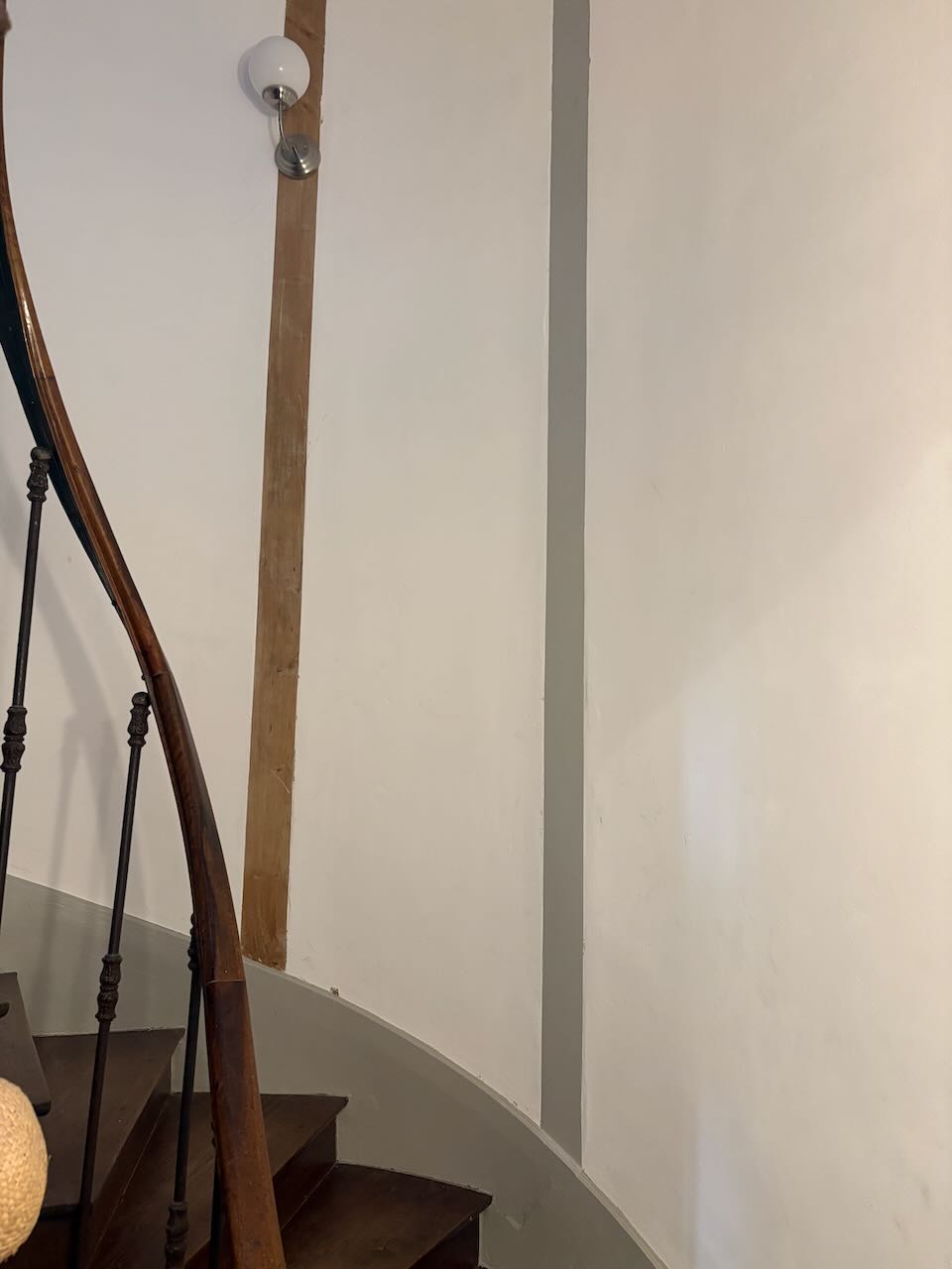 Testade att måla en regel i trappen mörkgrå. Svårmålat högst upp. Blev på fri hand utan maskeringstejp.