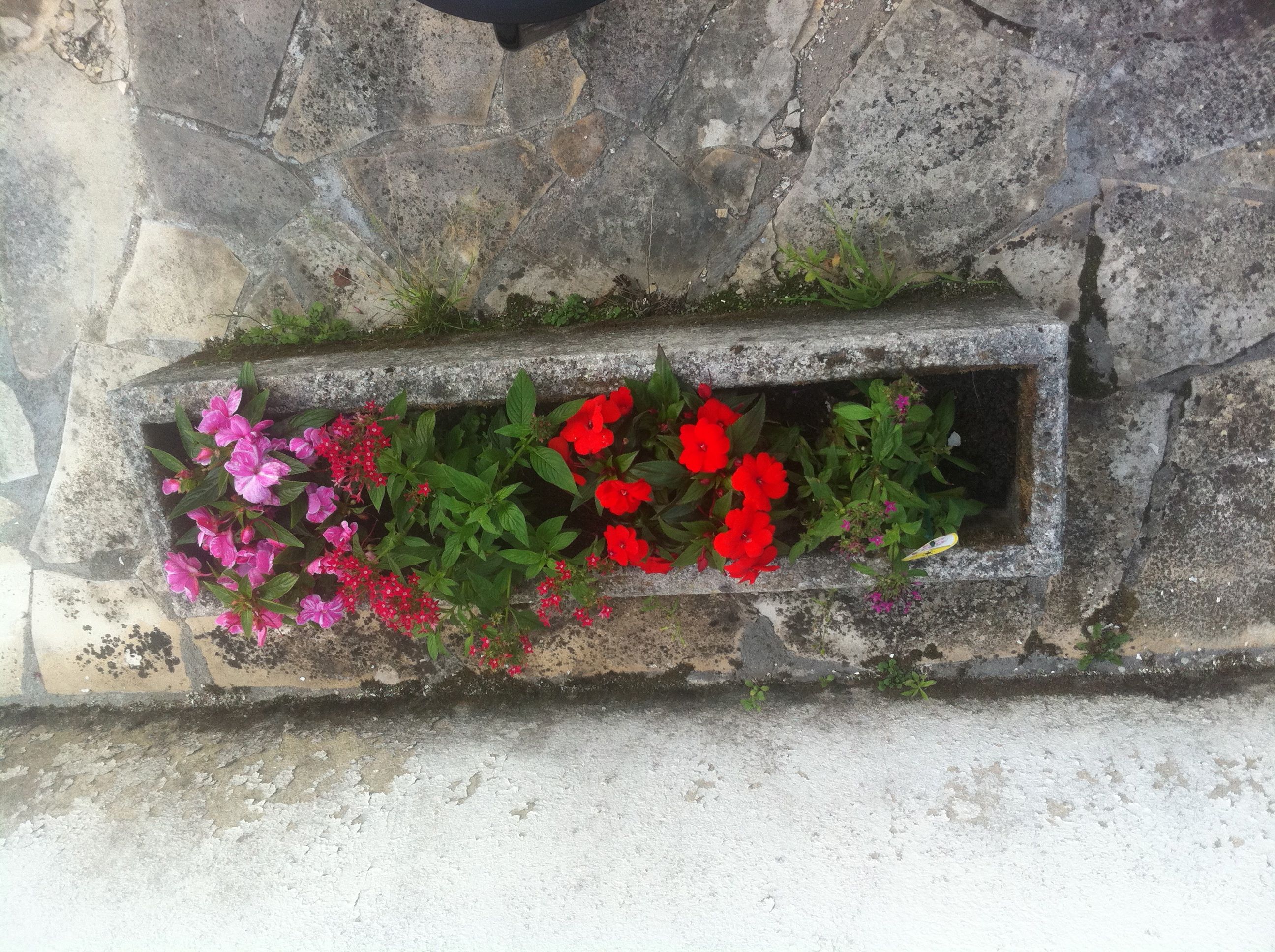 Grannen hade gjort en klurig ”uppfinning” för att se till att blommorna skulle hålla sig fuktiga. Han hade stuckit ned upp och nervända kapade petflaskor där han borrat ett par hål i korken.