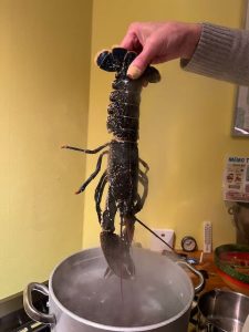 Kallt och utkylt i huset trots att värmepumparna stått på ett dygn. Kokade hummern och lagade lite mat.