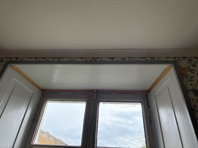 Fortsatt med nischen. 8 till stycken av lister har jag satt dit nu. Pill-jobb. Nu är det spacklat lite ett första varv. Sedan lite slip och så får vi se om det behövs mer spackel eller inte.