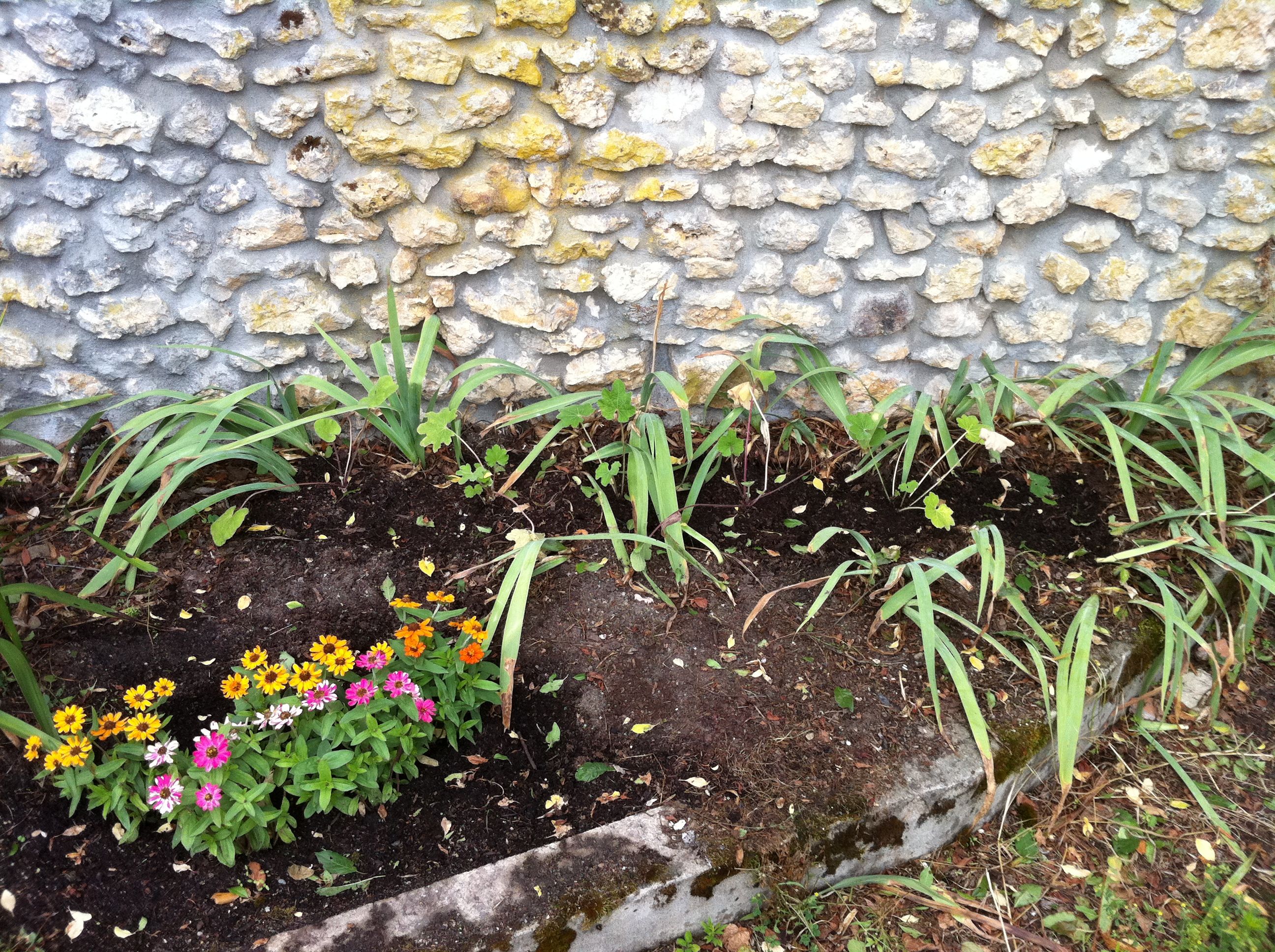 Lena har planterat en del, här är det bl.a. stockrosor inne vid muren. Dessutom har vi satt passionsfrukt och lite annat smått och gott.