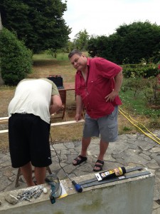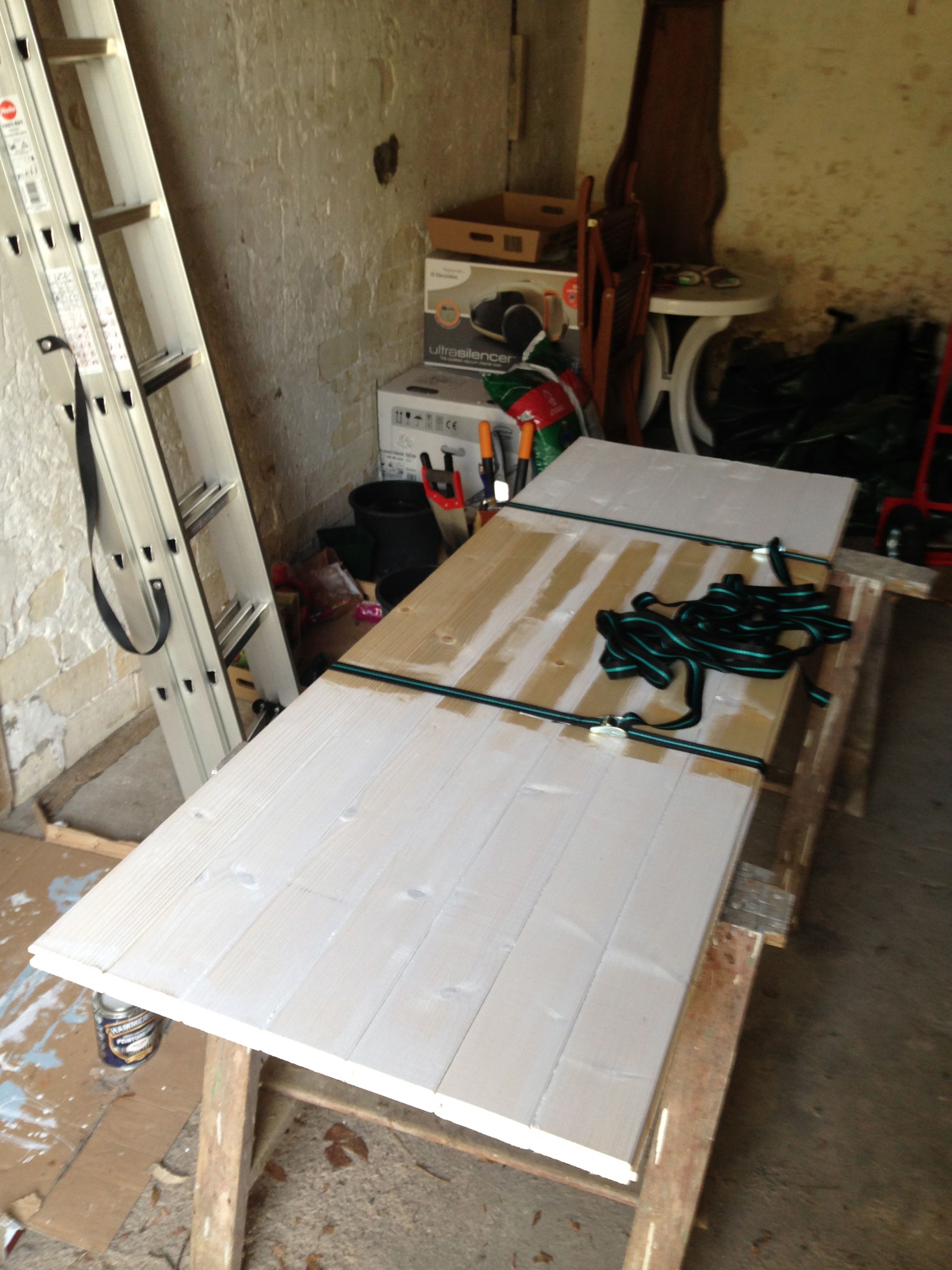 Idag har vi mest fixat med en fönsterlucka. Köpt virke och en massa annat på bricon. Sågat och grundmålat.