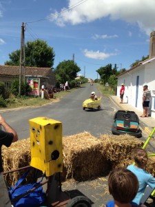 Sedan åkte vi iväg på lunch till Mortagne. Käkade på Café de la Rive. Var mycket folk i byn för de körde något slags lådbilsrally där.