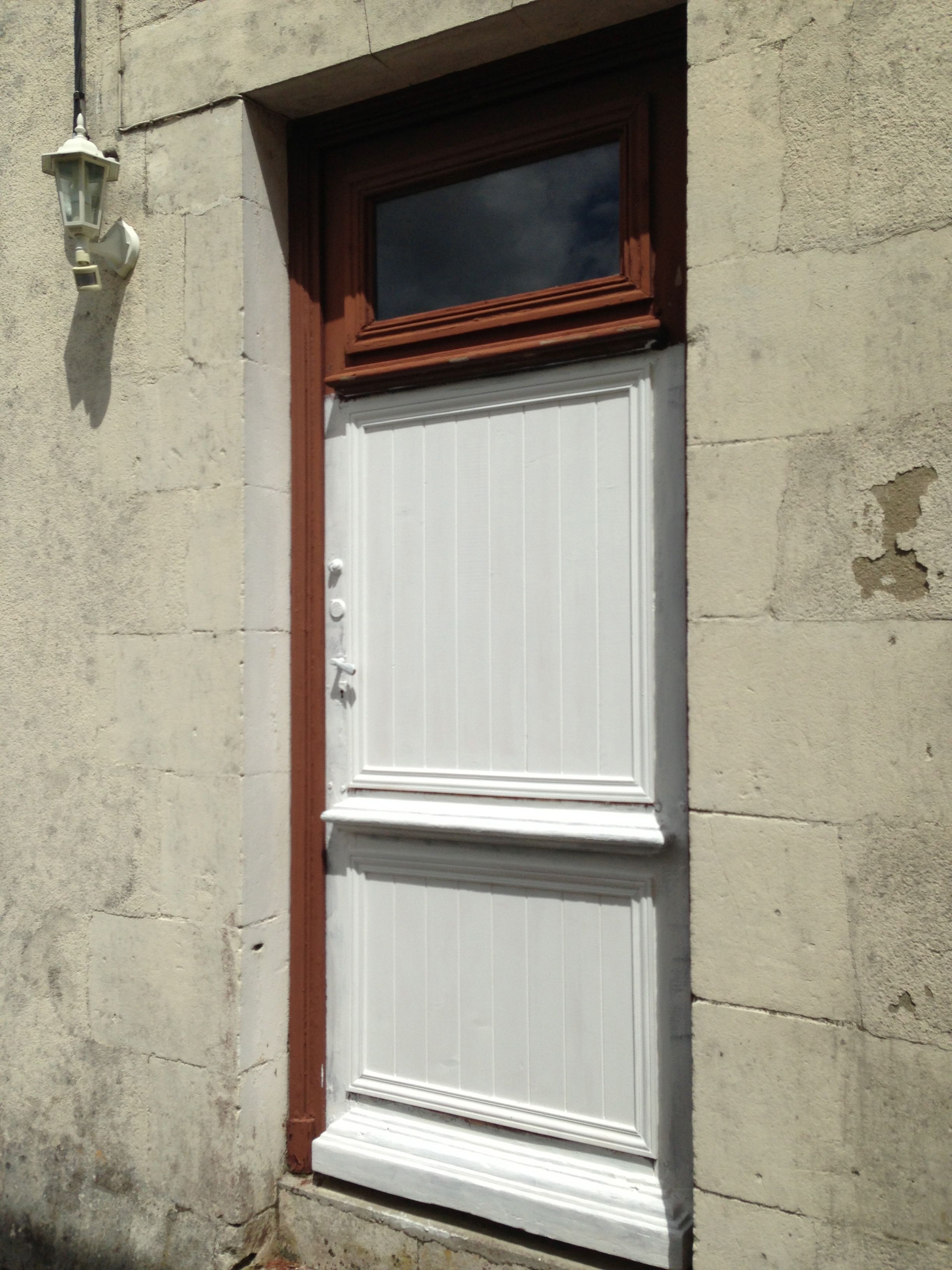 Ytterdörren har fått latex i alla nya fogar och är grundmålad. Toppen ska också grundmålas lite senare.